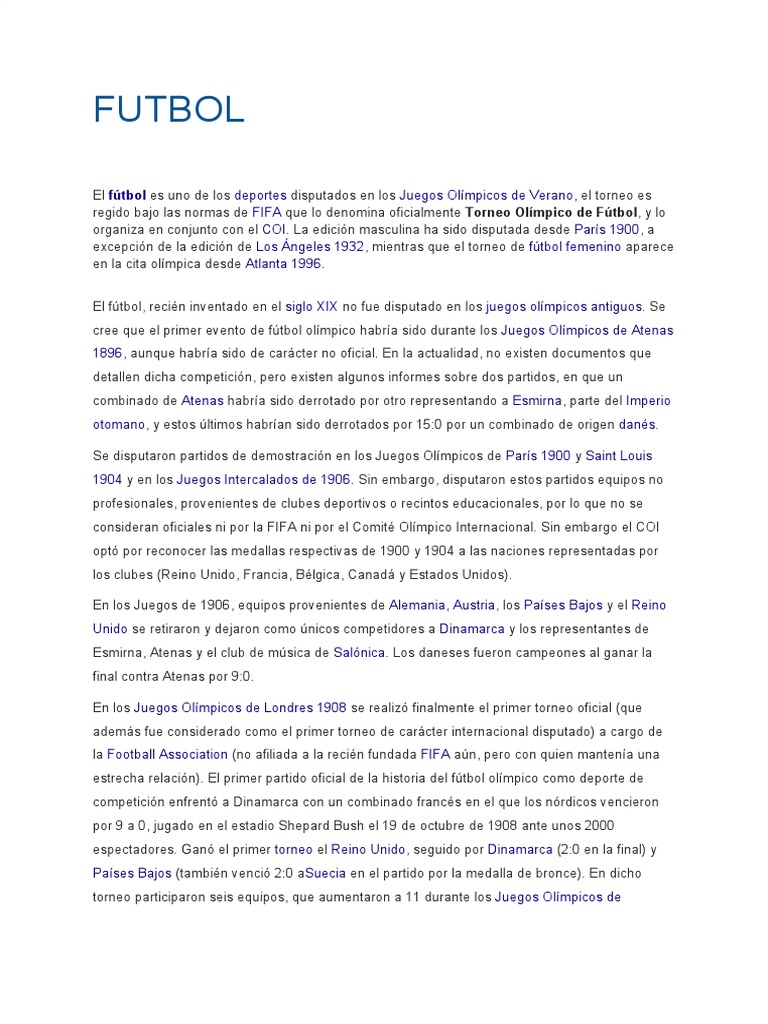 1 son disputados en este deporte dos torneos diferentes, el masculino y el femenino. Uno de los casos más llamativos en el mundo del fútbol. El fútbol en los juegos olímpicos de tokio 2020 se realiza en siete estadios de las ciudades de tokio, yokohama, saitama, sapporo, kashima y rifu del 21 de julio al 7 de agosto de 2021. Los juegos olímpicos de san luis 1904, oficialmente conocidos como los juegos de la iii olimpiada, se celebraron en san luis, estados unidos, entre el 1 de julio y el 23 de noviembre de 1904. Participaron 651 atletas (645 hombres y 6 mujeres) de 12 países, compitiendo en 91 eventos de 16 deportes olímpicos , 1 2 los juegos olímpicos.